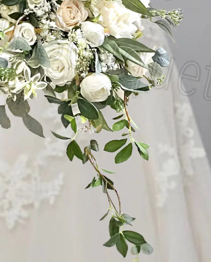 The cascading bouquet is perfect for brides who want a classic and timeless look for their wedding day.