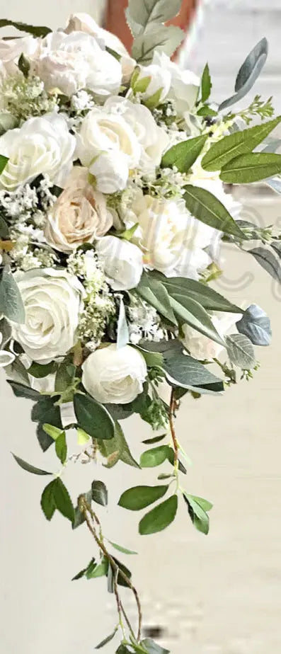 1 x large bridal Teardrop bouquet approx 22” drop (smaller size can be amended to suit)