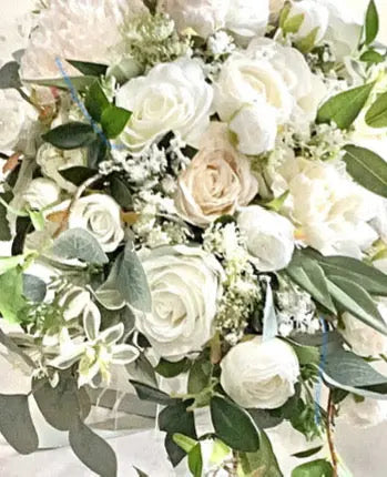 The artificial white and ivory flowers are beautifully crafted to create a stunning and realistic look.