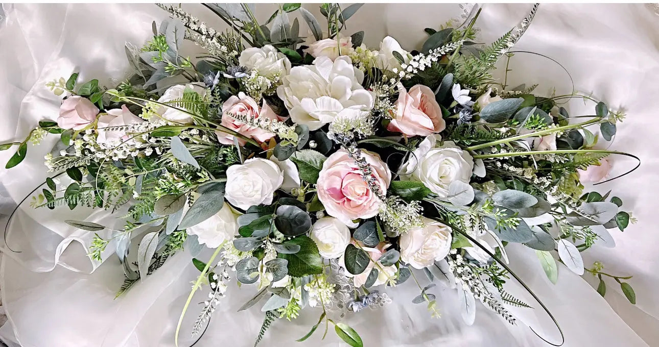 The artificial Pink, white and ivory flowers are beautifully crafted to create a stunning and realistic look.