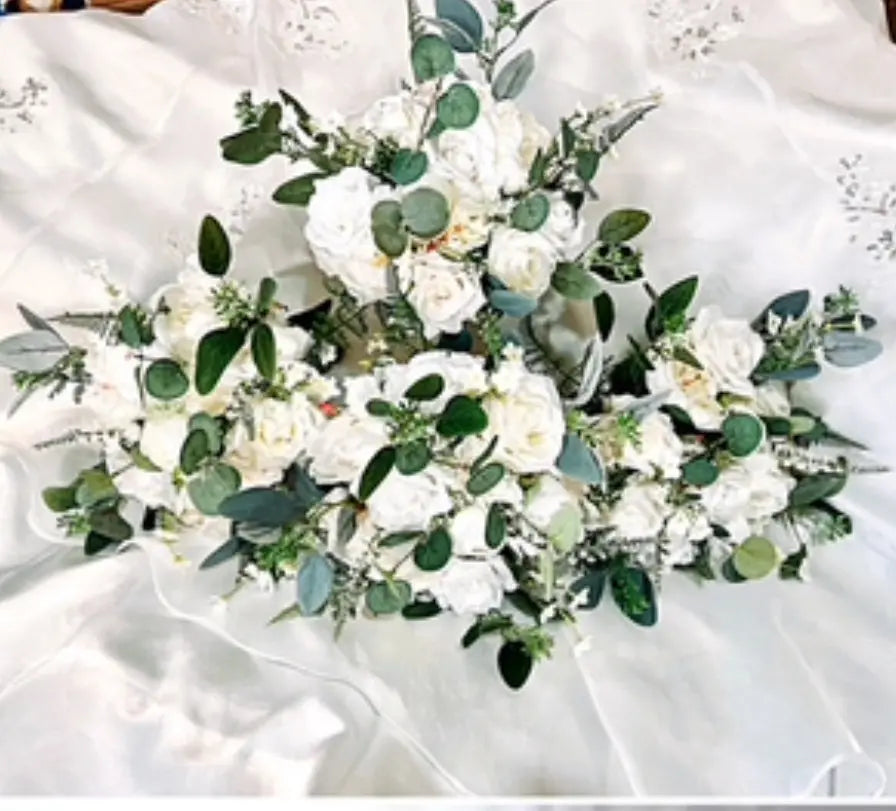 The artificial white and ivory flowers are beautifully crafted to create a stunning and realistic look.