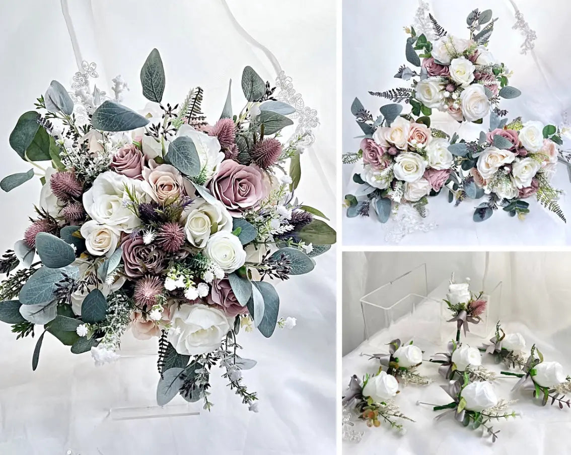 Artificial Wedding Flowers Blue Mauve Artificial Wedding Flowers Blue Mauve, Ivory Thistle Round Spray Package 11pc BESTOW- Artificial Wedding Flowers... Read more