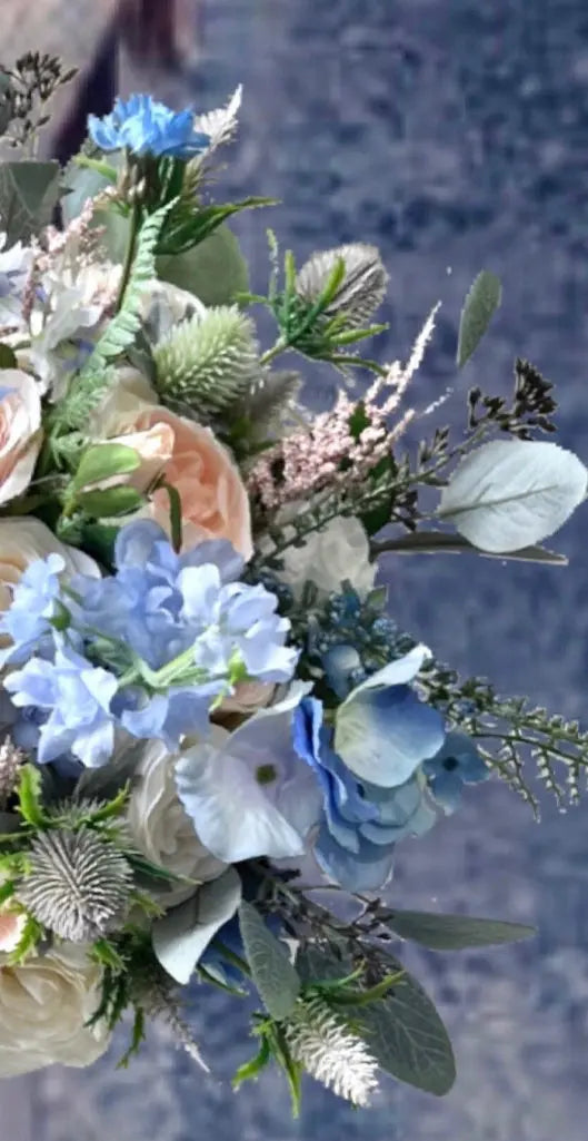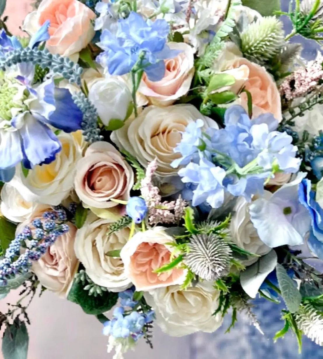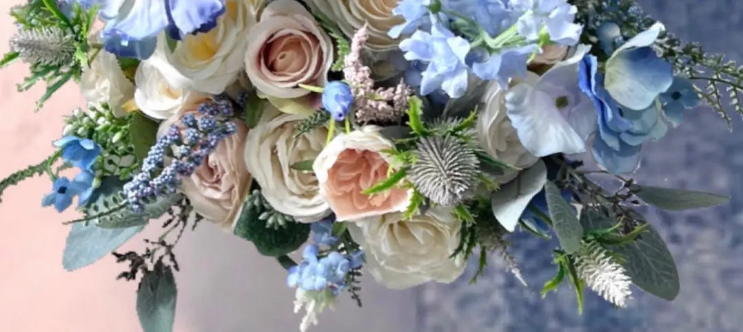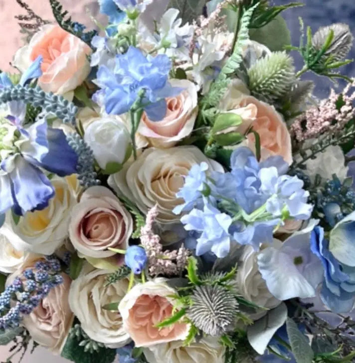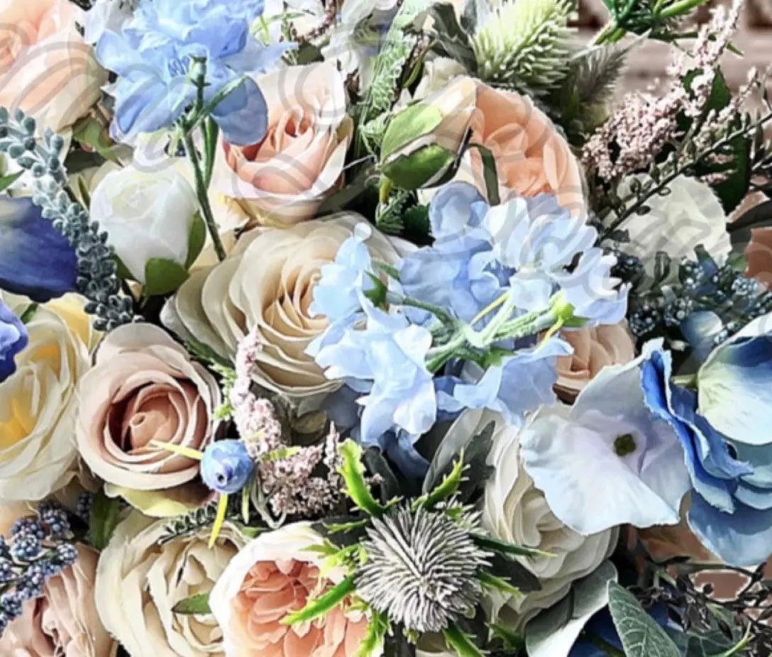 Artificial Wedding Flowers Bridal peony Bouquet in White, Ivory, Pink & Blue