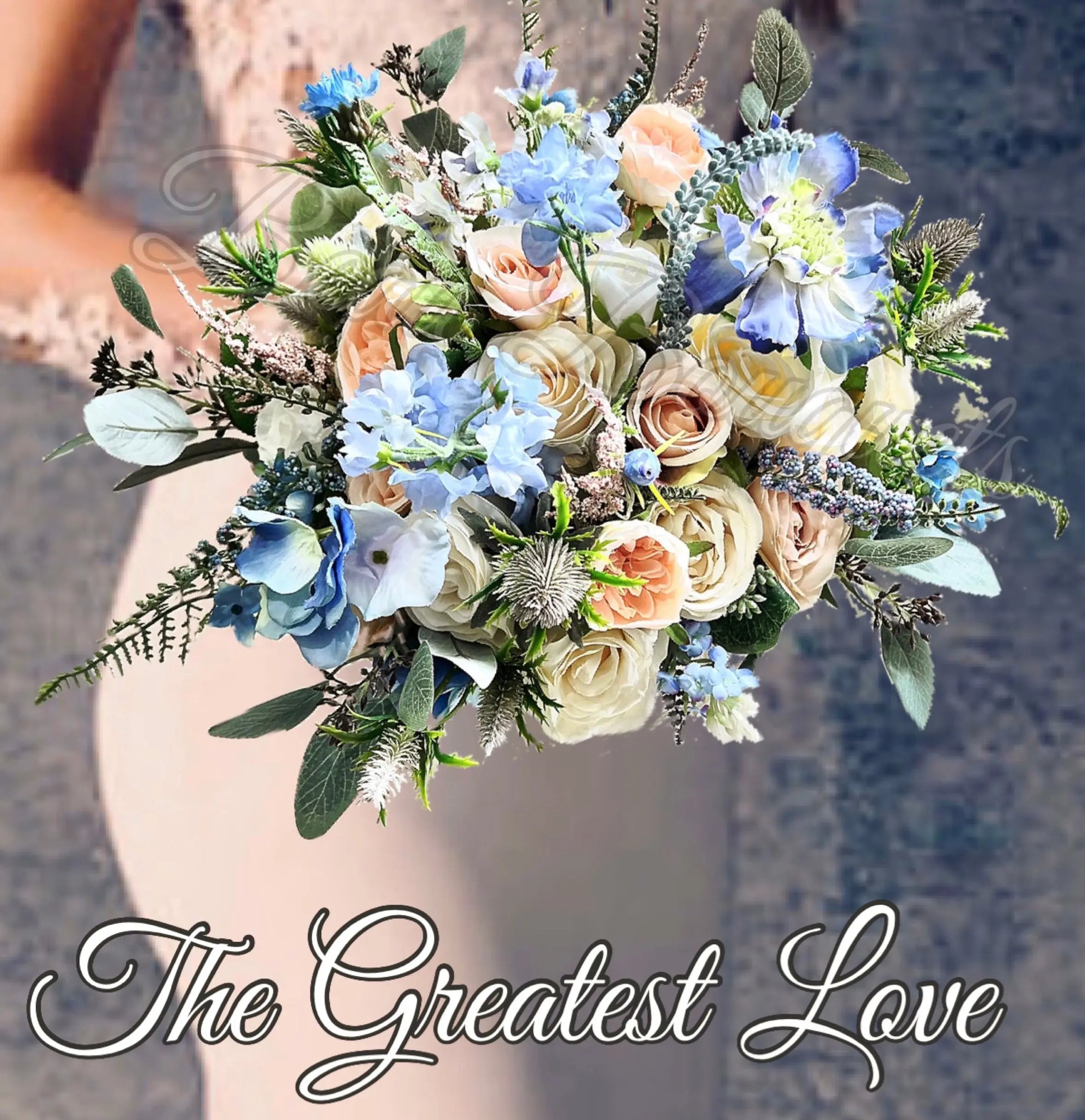 Artificial Wedding Flowers Bridal Artificial Wedding Flowers Bridal peony Bouquet in White, Ivory, Pink & Blue THE GREATEST LOVE Artificial... Read more