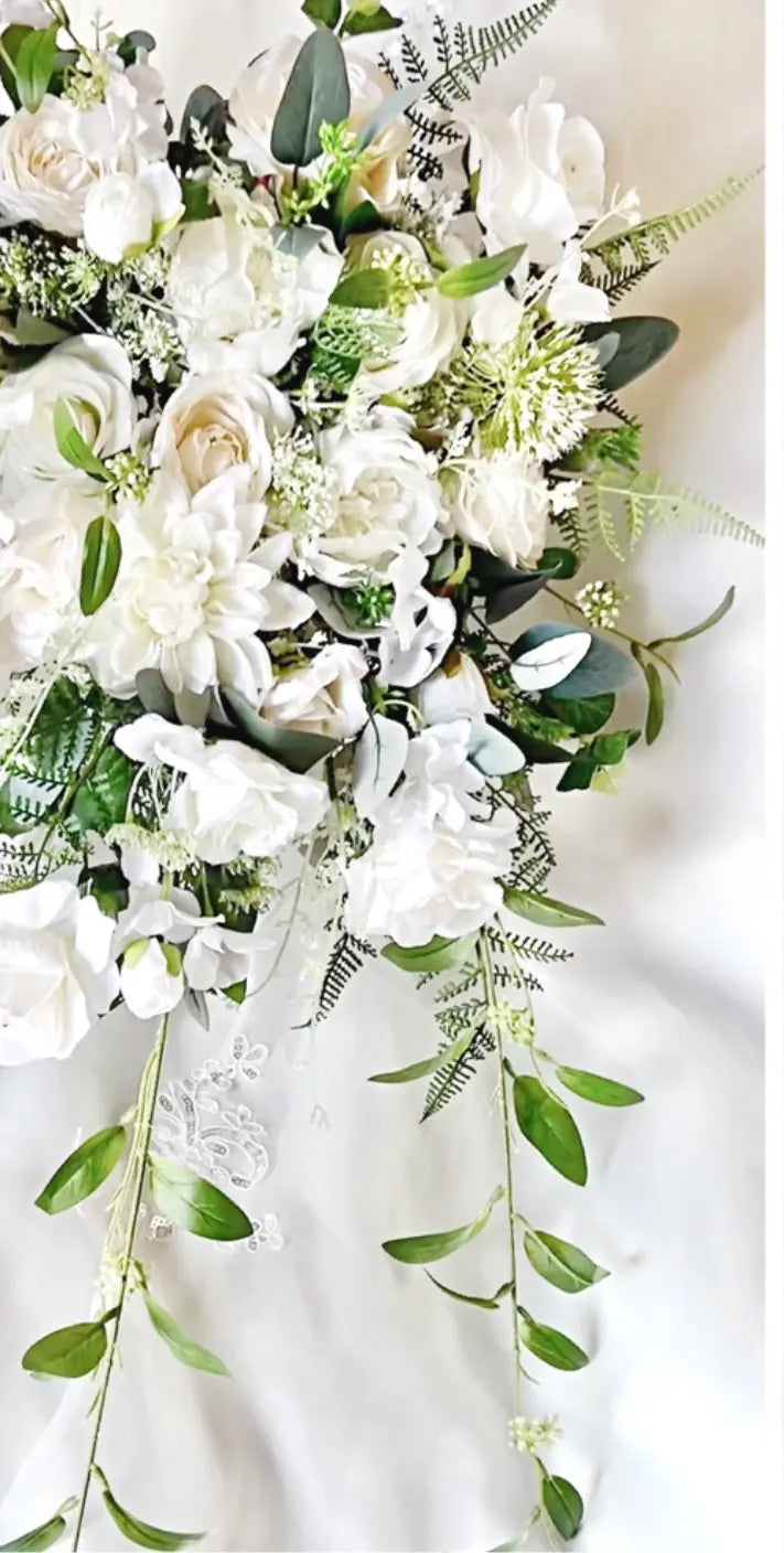 1 x large bridal cascading bouquet approx 22” drop (smaller size can be amended to suit)