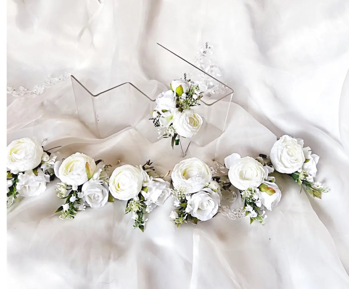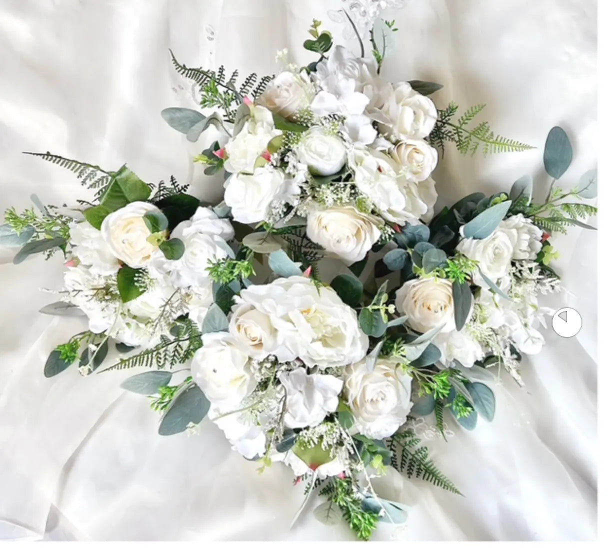 The artificial white and ivory flowers are beautifully crafted to create a stunning and realistic look.