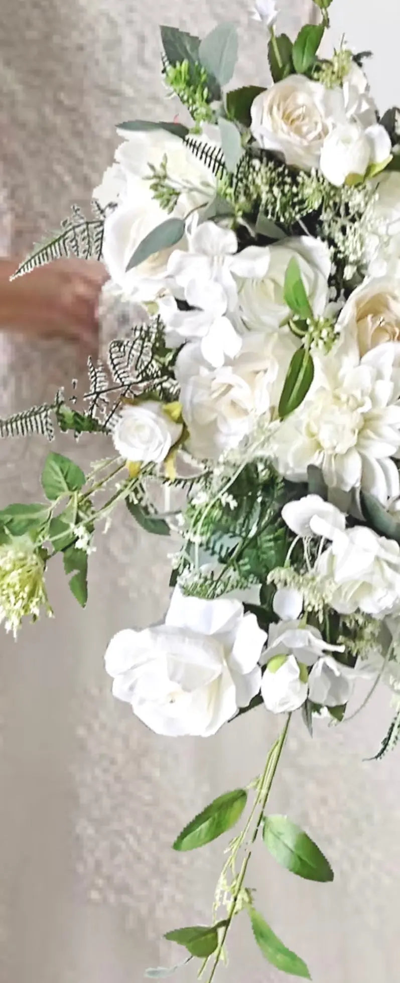 Artificial Wedding Flowers  Rose, peony in White Ivory Cascading Bridal Bouquet