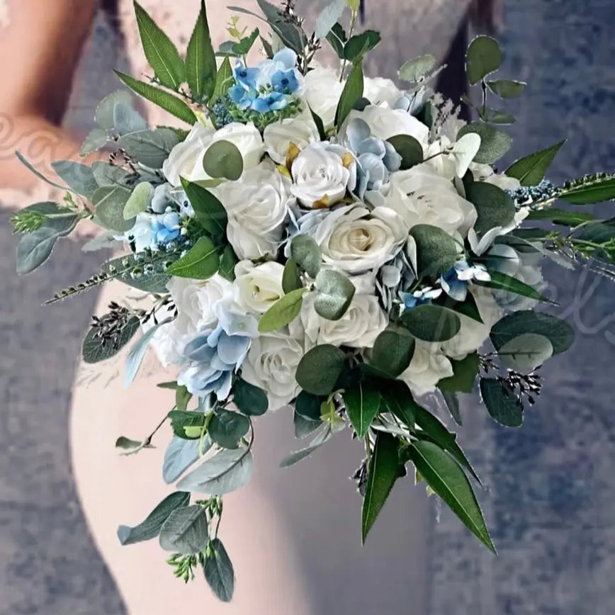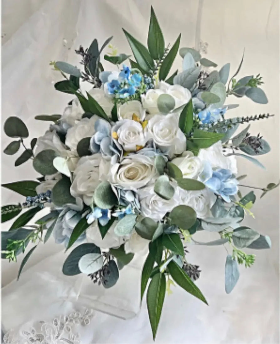 Artificial Wedding peony Flowers Bridal Bouquet in White, Ivory, Blue