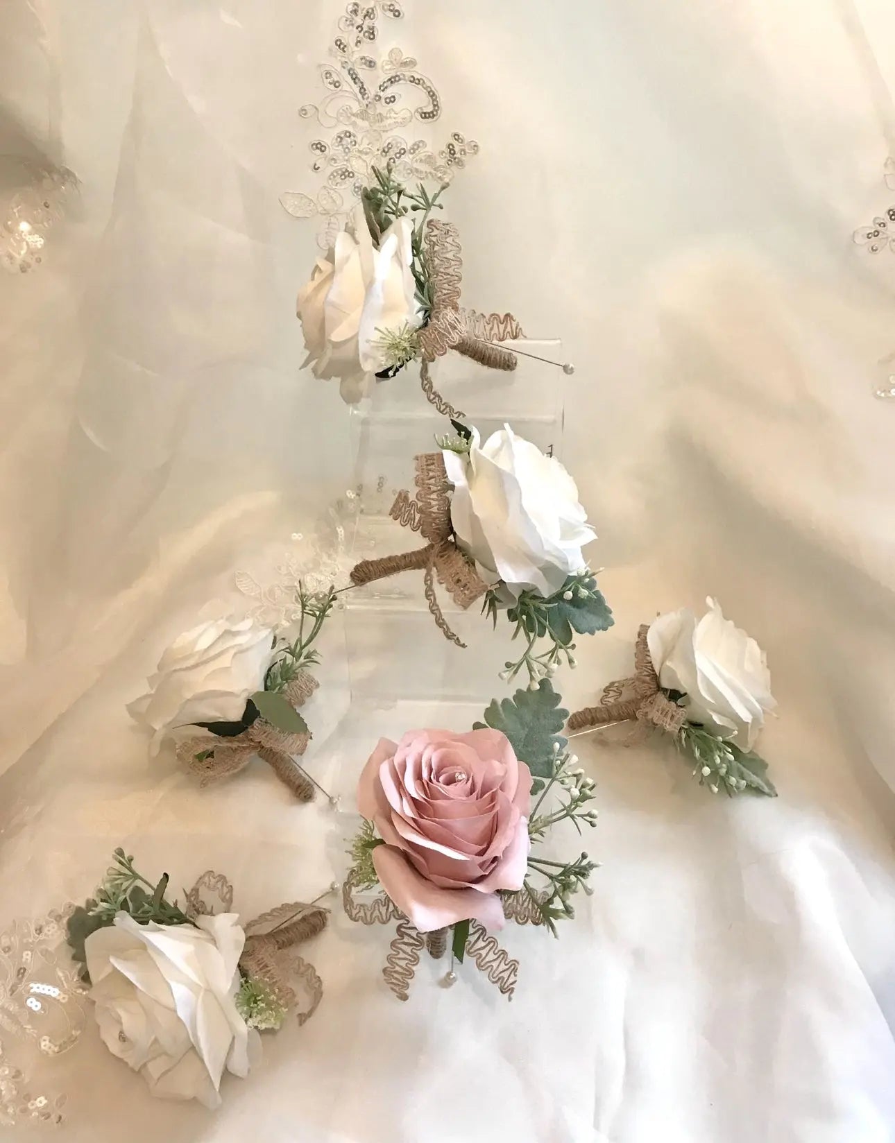- 5 gents buttonholes for the important males in your wedding party, beautifully tying into the overall floral theme.