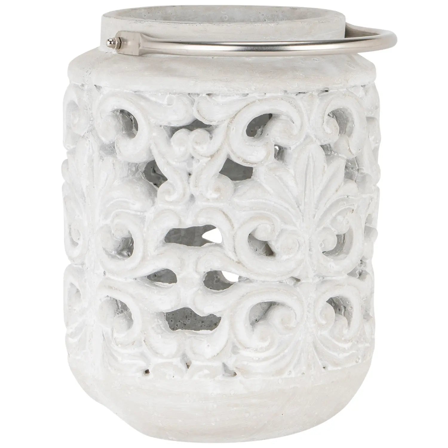 Cement Lantern Planter in Pale Grey Cement 26cm , Fleur Lantern Home Decor