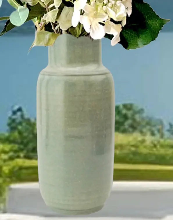 Ceramic Vase with Reactive Green Glaze 29cm Tall, River Valley Vase