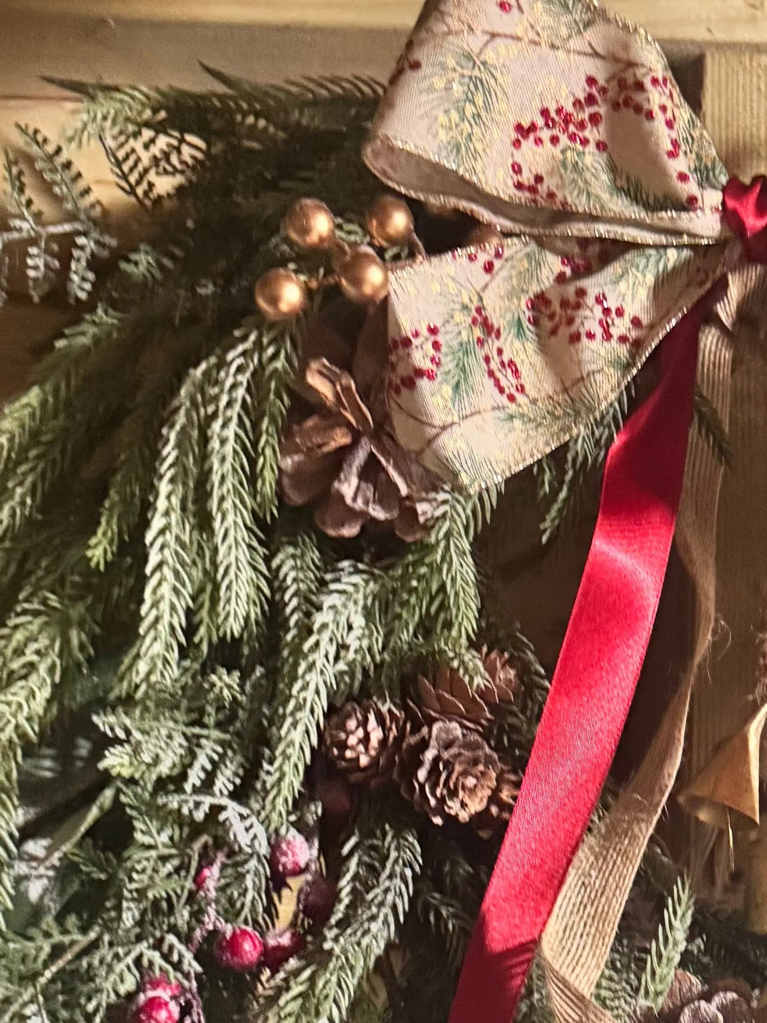 Crafted from high-qualityreal touch nordic pine, artificial berries, real, Fir cones & other foliage ,