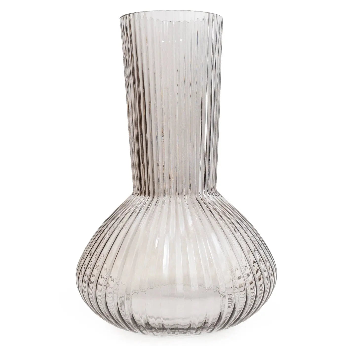 it has been crafted with meticulous attention to detail, this vase seamlessly blends elegant ridges and a soft, neutral grey hue.