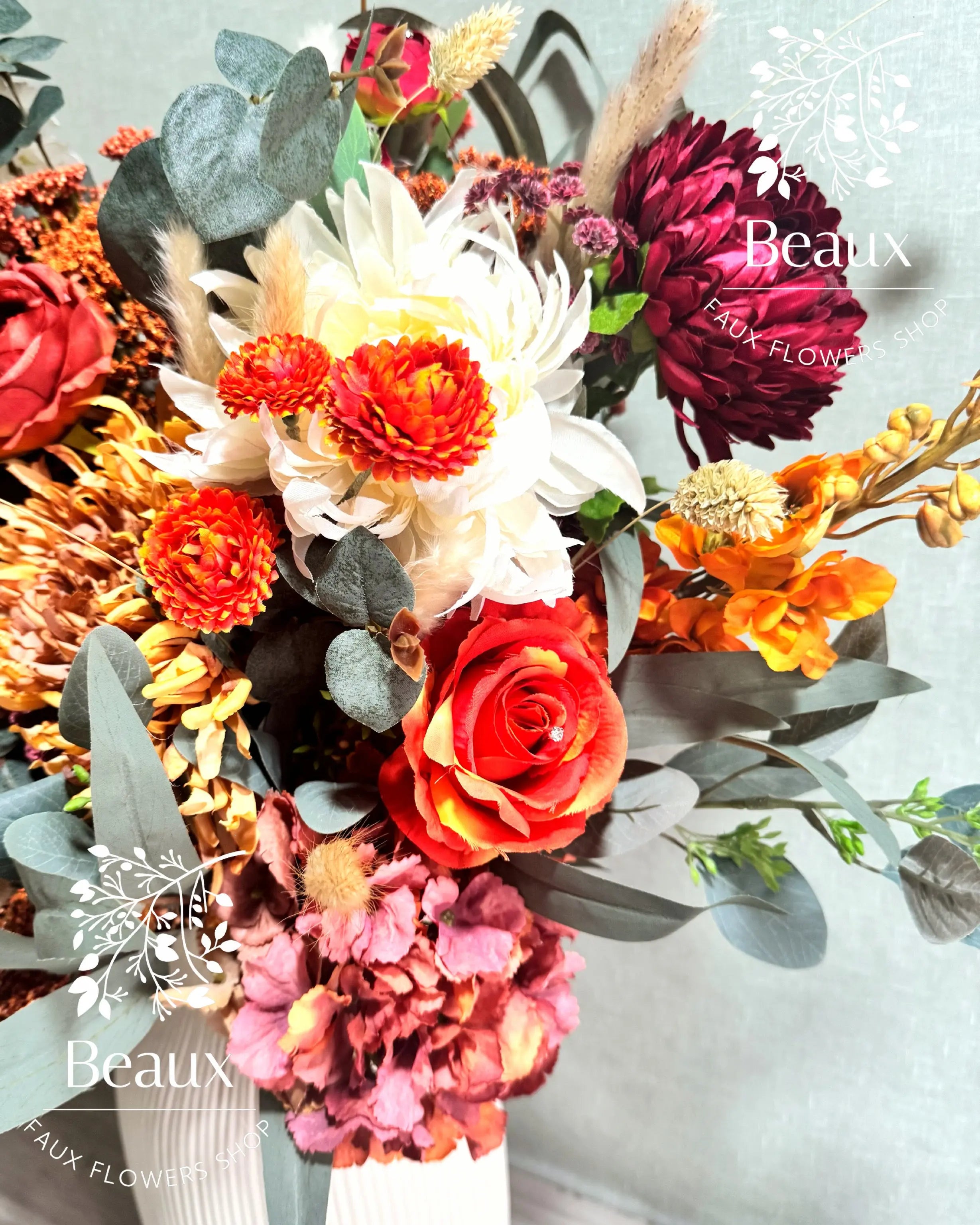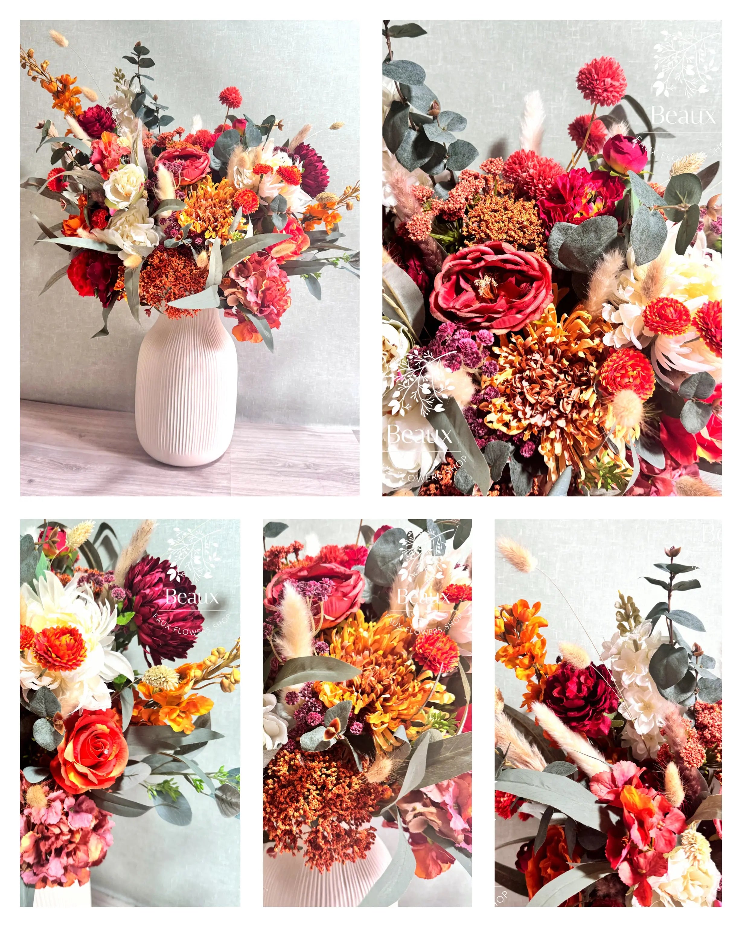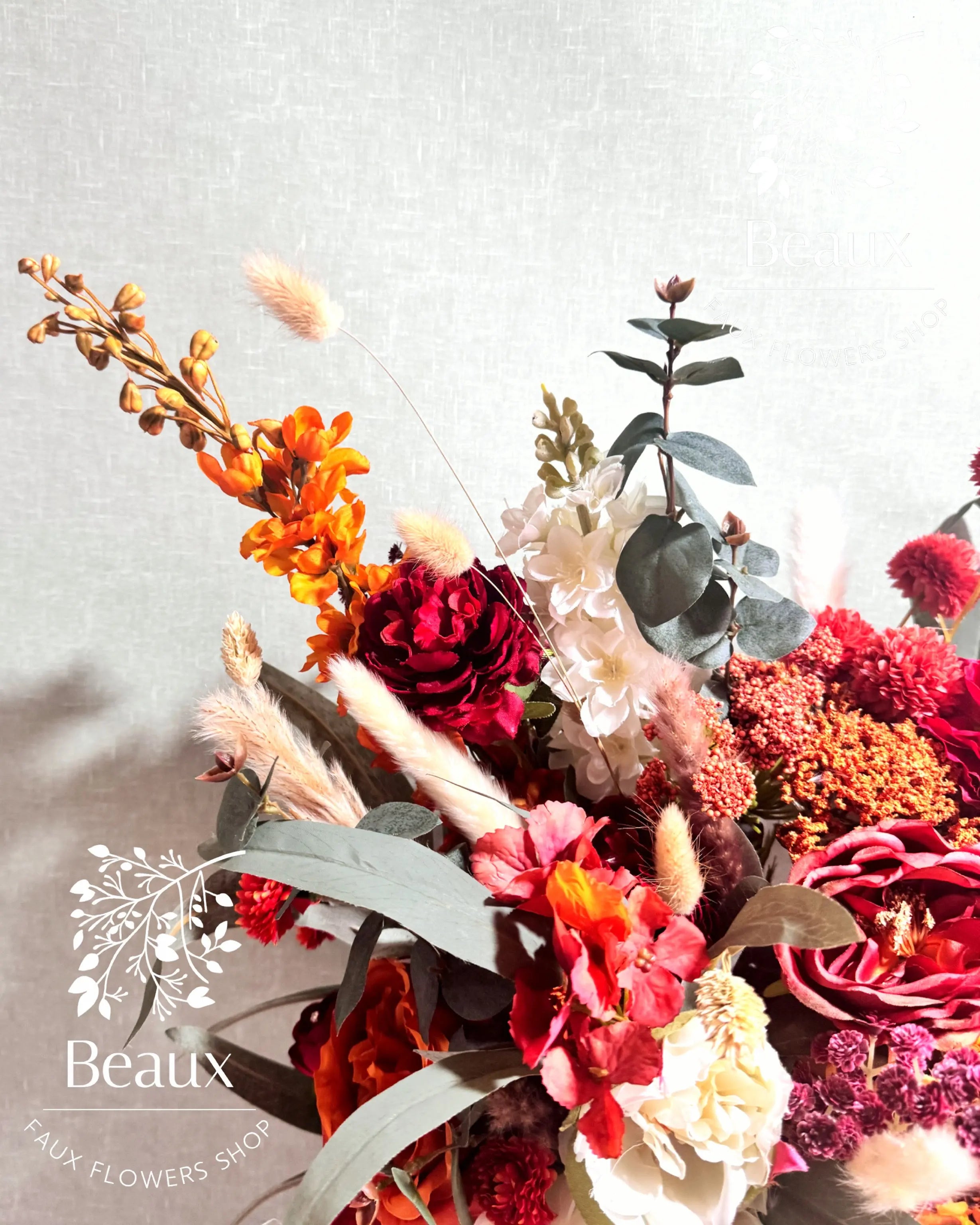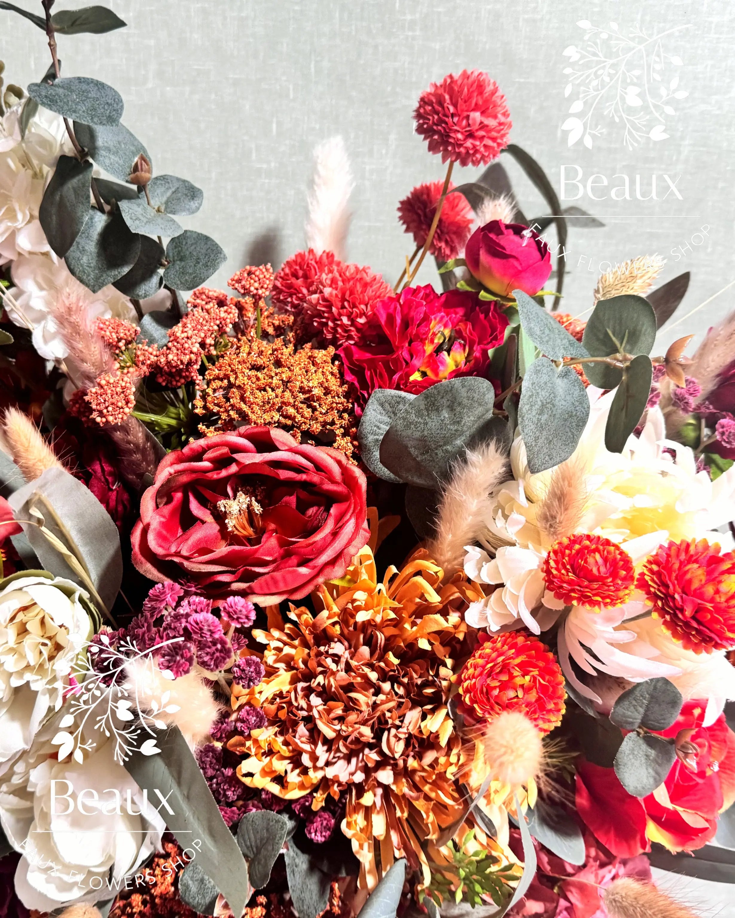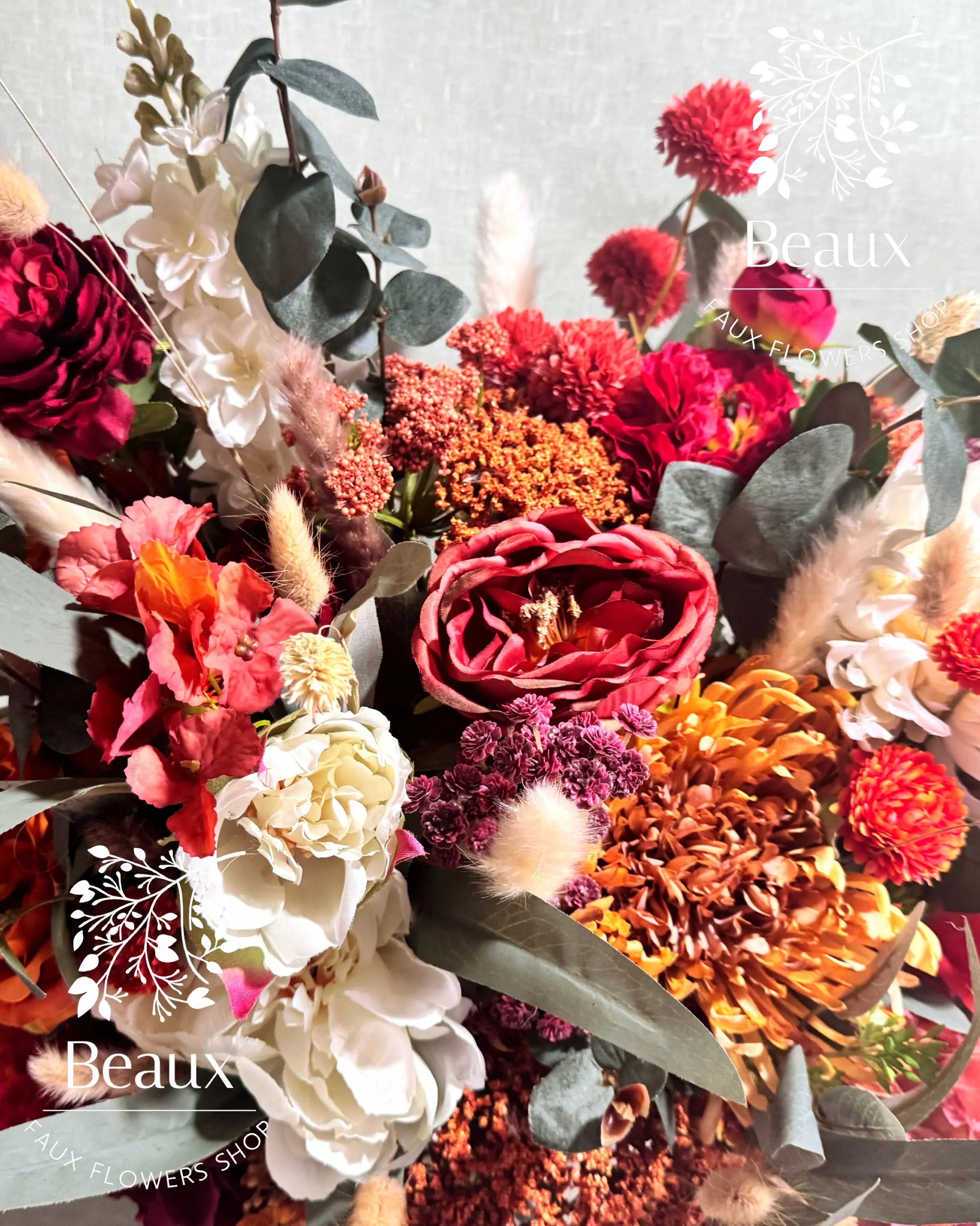 Beaux Faux Flowers Shop specializes in creating stunning and lifelike artificial flower arrangements, perfect for weddings and special occasions.