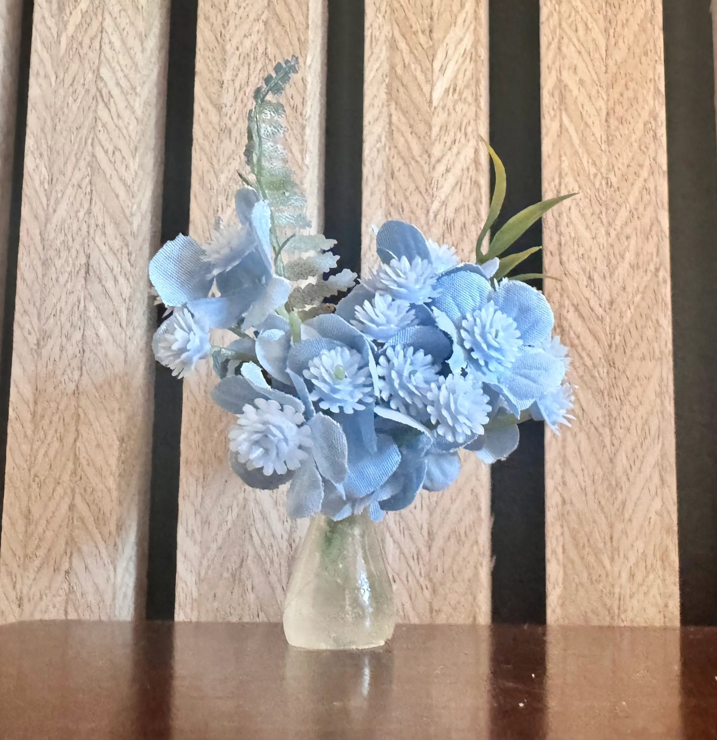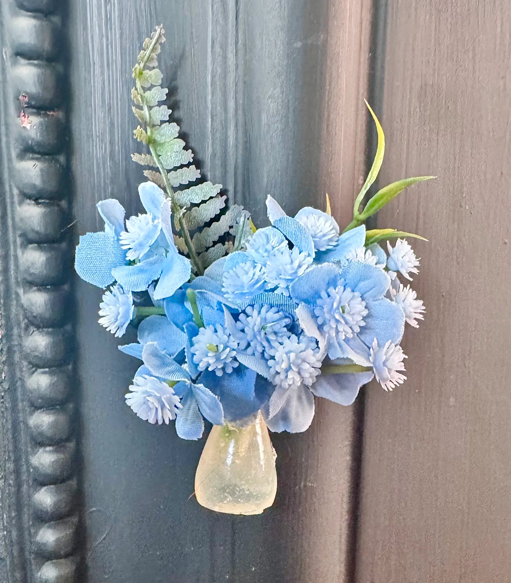 Flower fridge magnet gift  wedding favour in pale blue with frosted glass vase