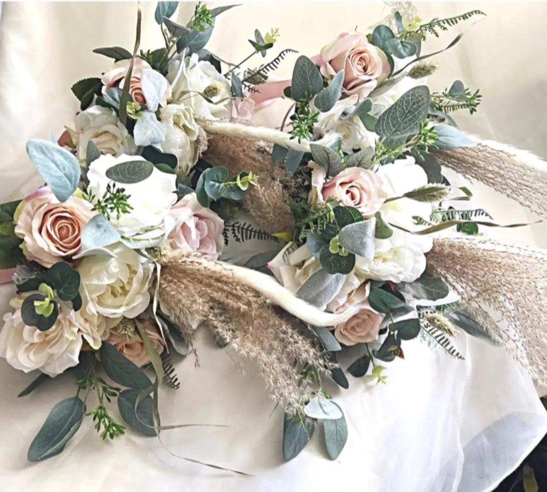 This beautiful pampas bridal bouquet package is the perfect addition to any wedding or special occasion.