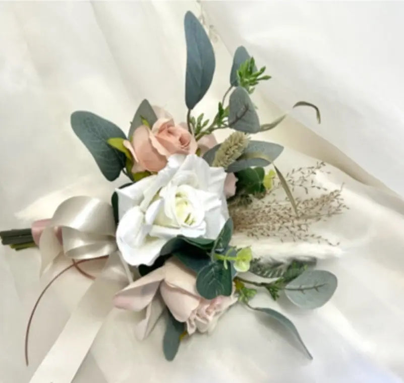 Ivory, Pink Pampas Spray Bouquet, Round Loose Bridal Bouquet Artificial flowers