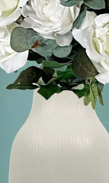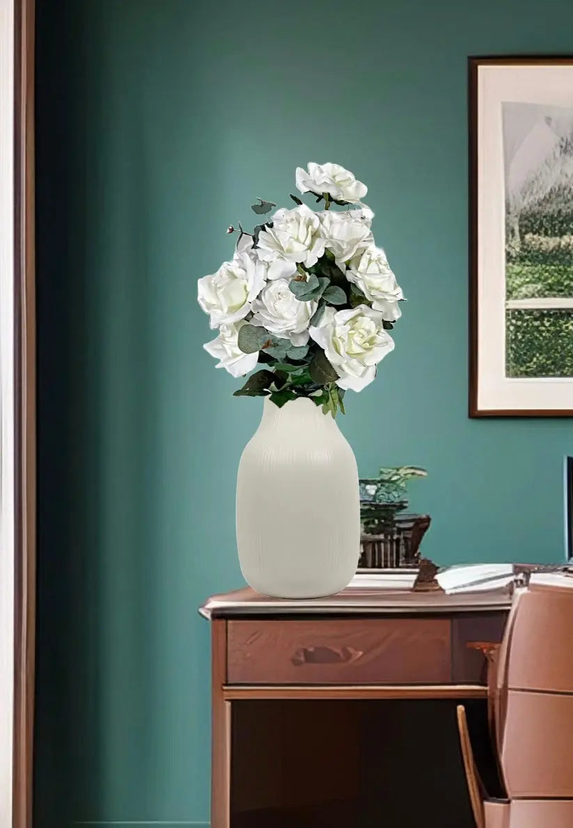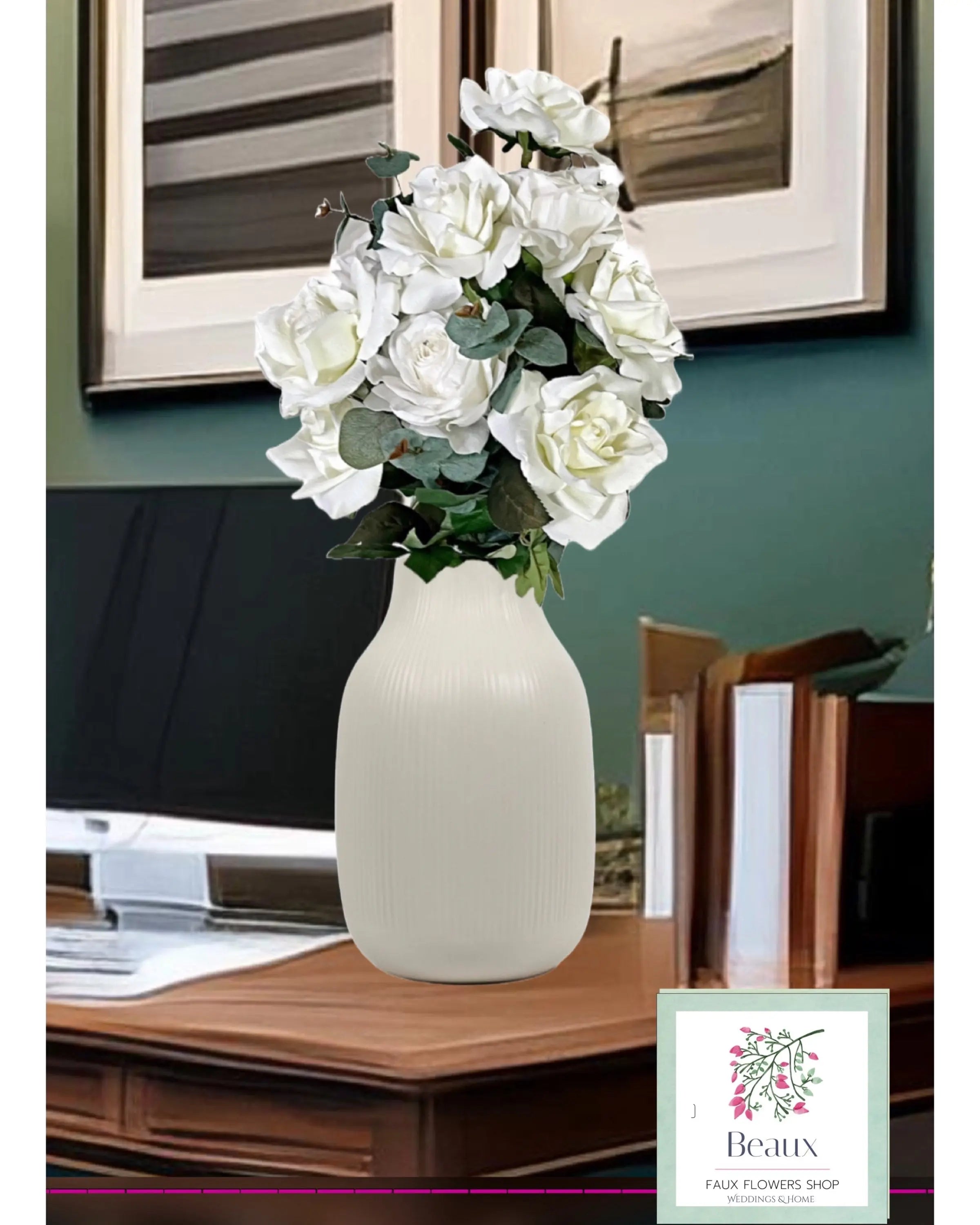 Faux Floral Arrangement Ivory, White Large Head Garden Rose , , Tower Terrace