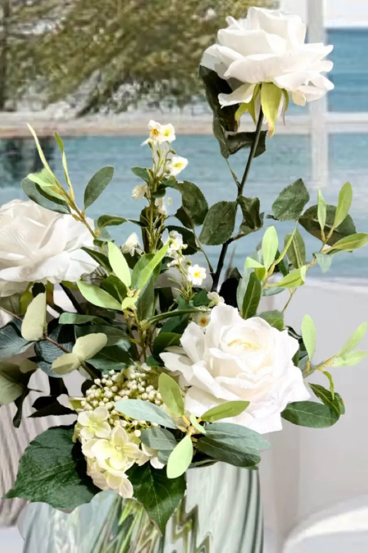 Looking to add a timeless touch to your home without the upkeep of real flowers? Our Faux Floral Arrangement with Vase option is the perfect choice.
