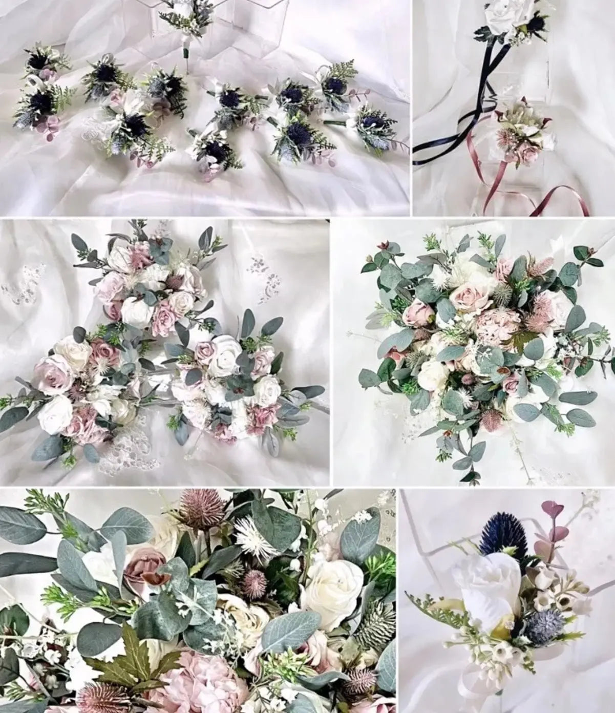 Scottish silk thistle bridal bouquet Scottish silk thistle bridal bouquet in mauve pink, ivory rose package 18pc LOVE AND DEVOTION... Read more