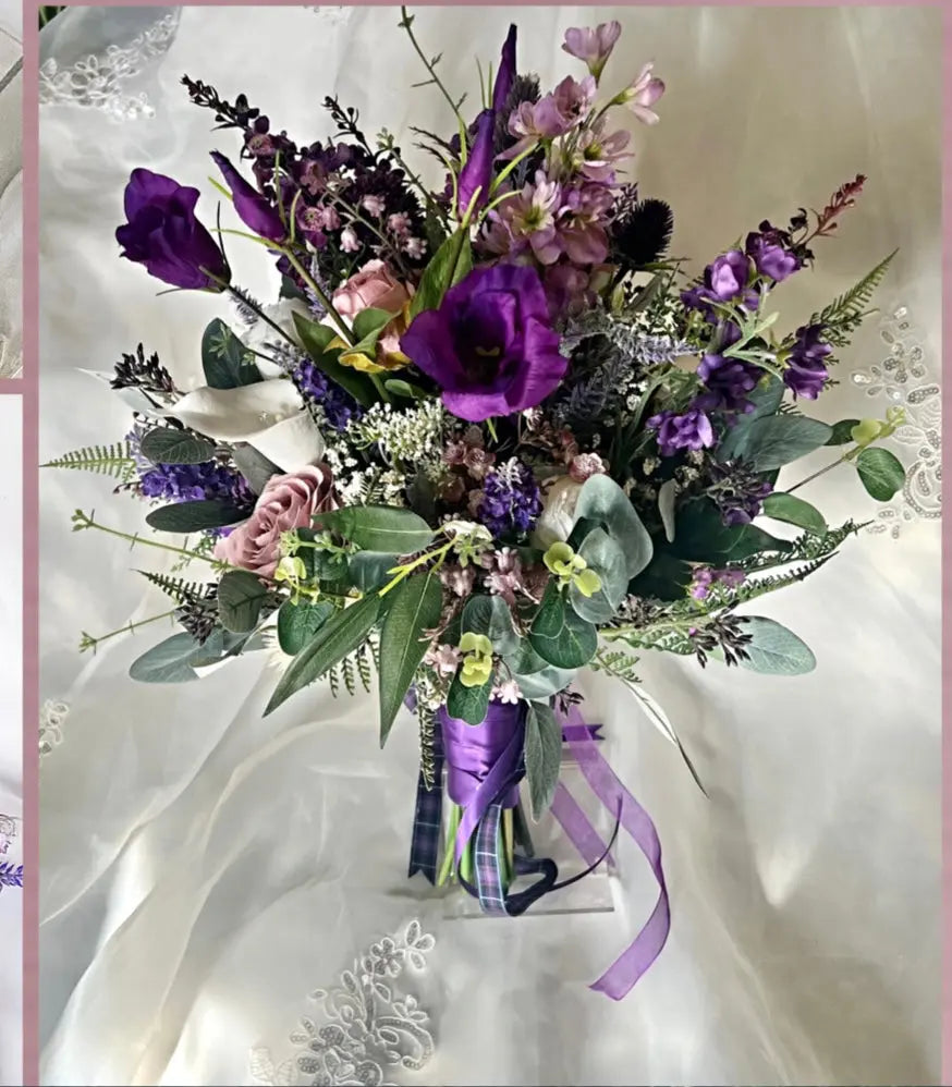 Scottish wildflowers Scottish wildflower & thistle mauve, ivory & purple & lilac   Artificial silk Weddings Flowers ARDENTLY Make your wedding... Read more