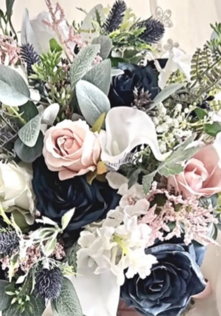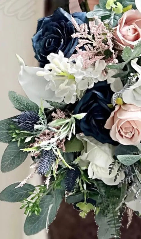 Silk Artificial Rose bouquet, blush, navy, Ivory round Bridal flowers