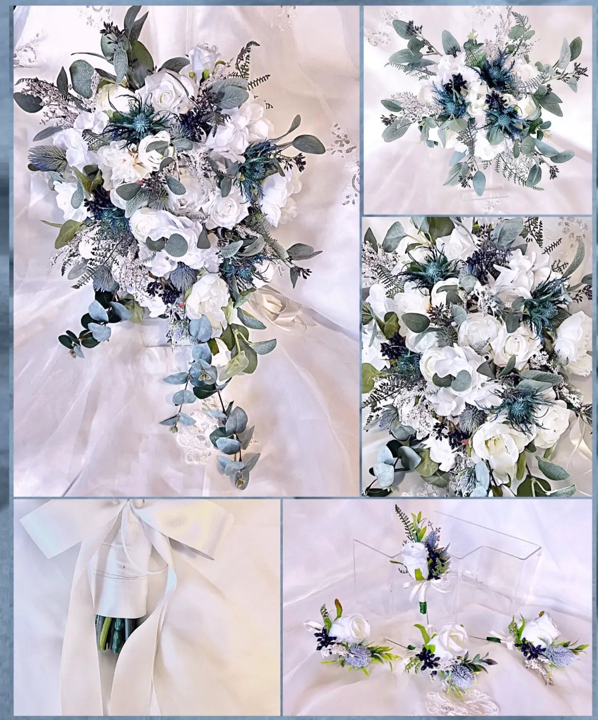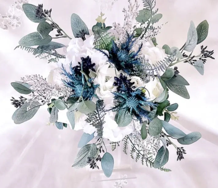 ALL I EVER WANT - Artificial Scottish theme wedding flowers with Dusty blue and navy blue