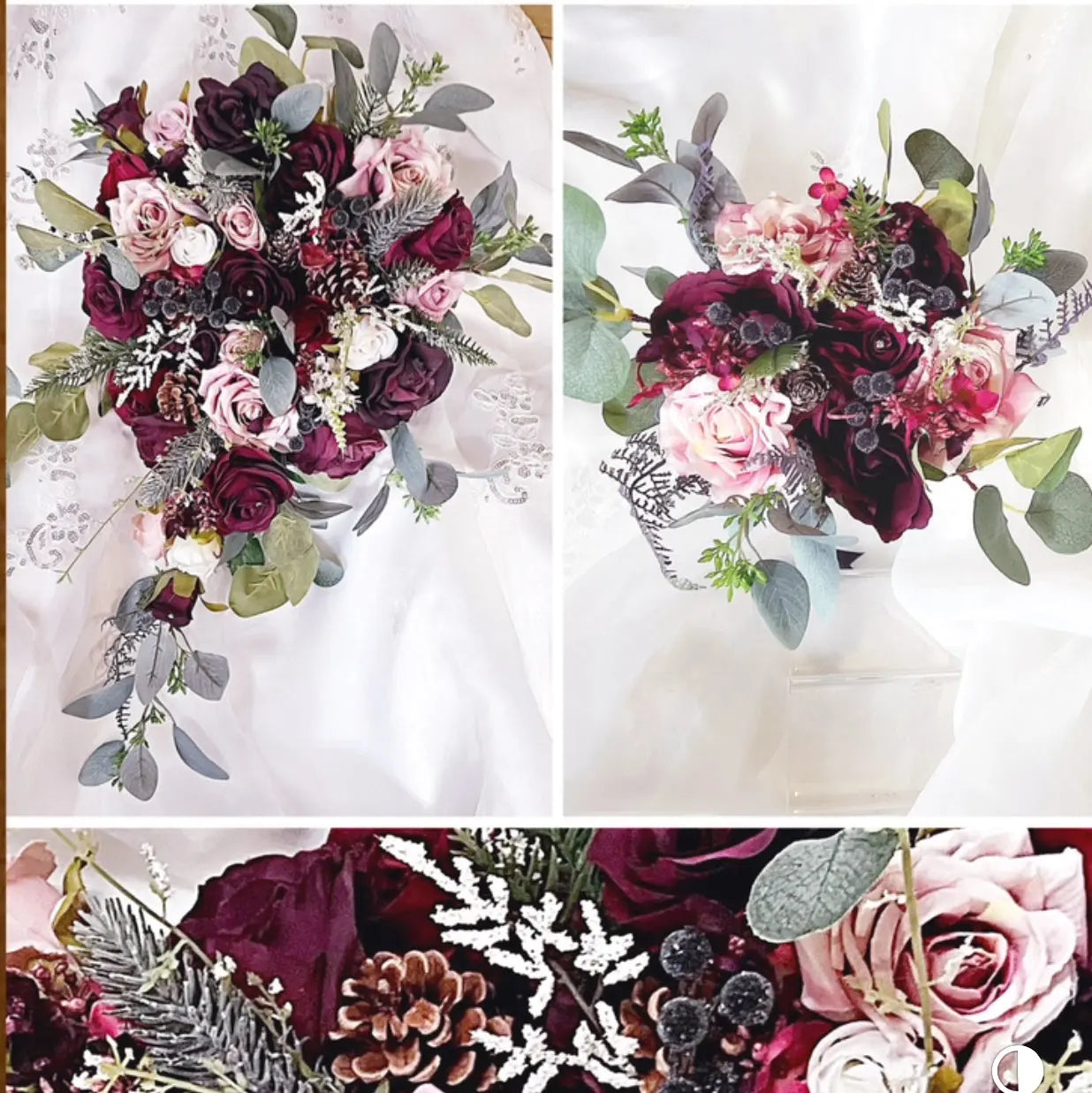 burgundy, black, ivory, blush & ruby red- Artificial Weddings Flowers