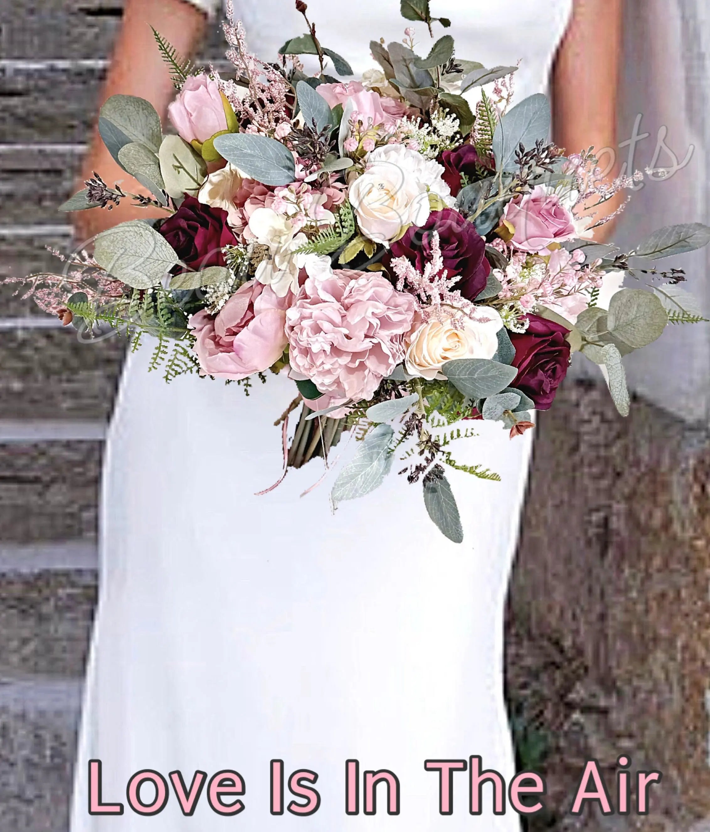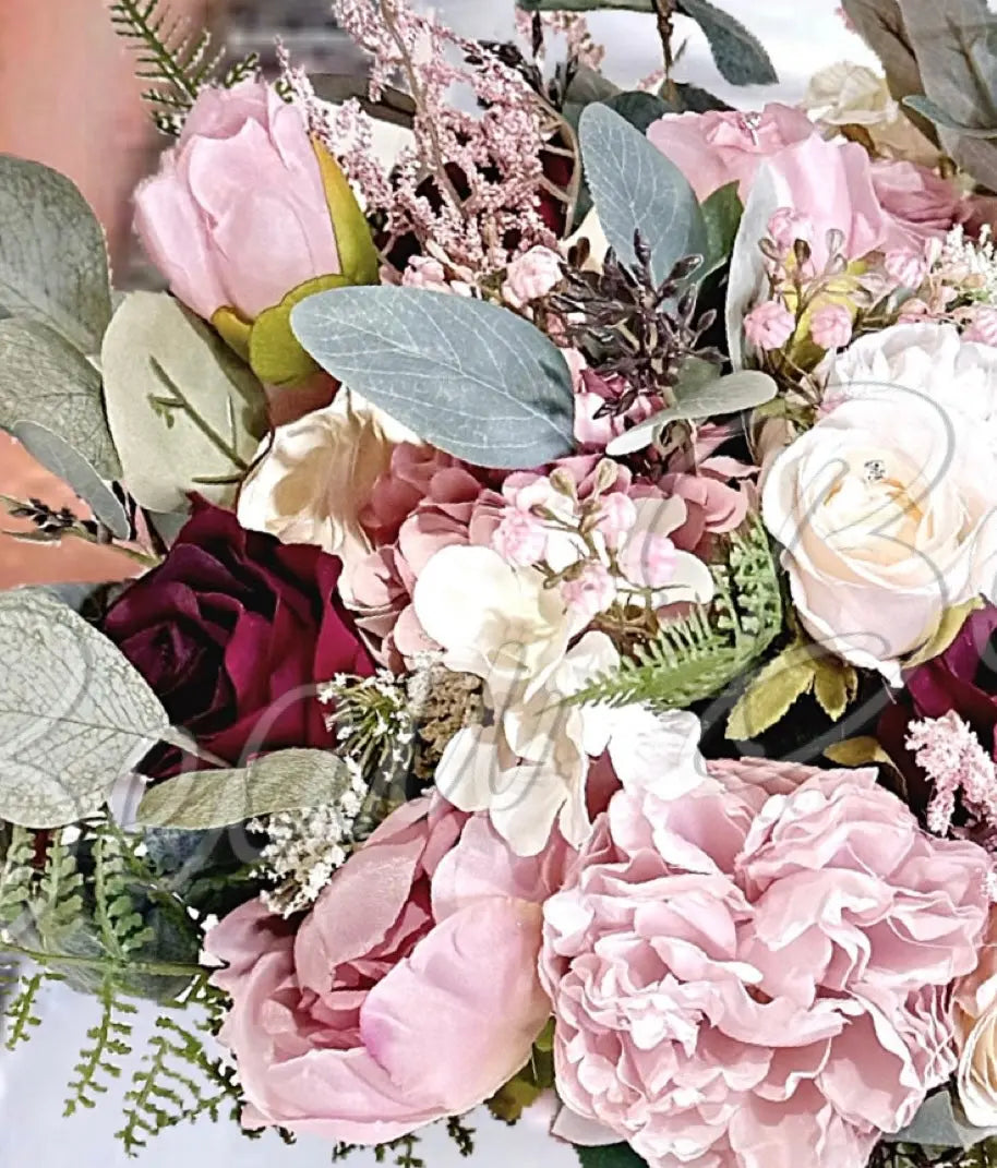 LOVE IS IN THE AIR - Dusky pink, ivory & burgundy- Artificial Weddings Flowers
