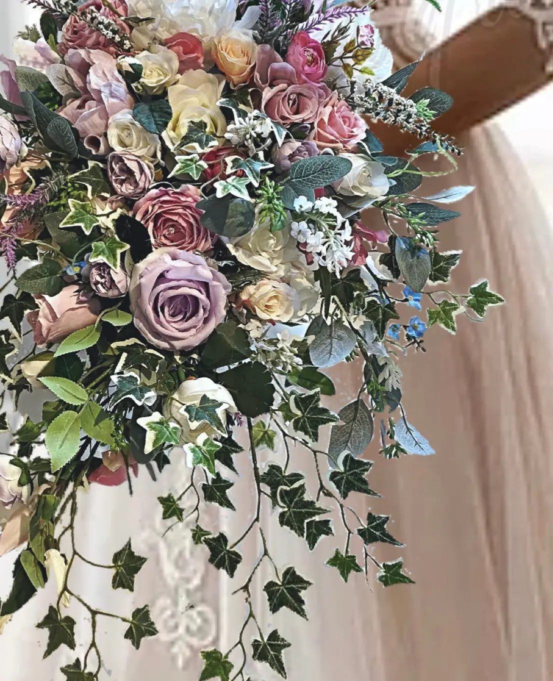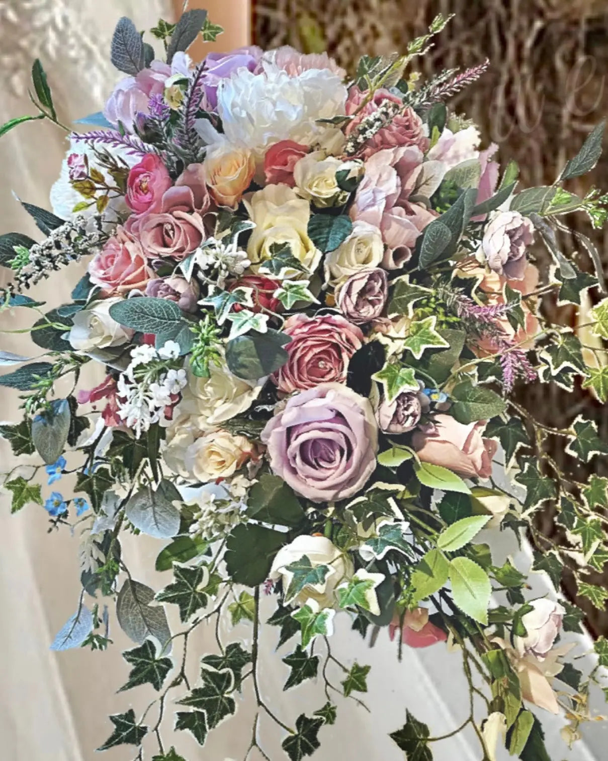 Silk Rose with trailing ivy bouquet Silk Rose with trailing ivy bouquet -lilac, pink, Ivory Teardrop Bridal Bouquet ABUNDANCE- Artificial... Read more